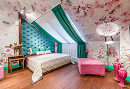 The atmosphere of a fairytale was created by the designer of the project with seamless wallpaper from new Botanika collection by Affresco.