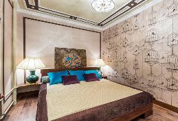 Affresco frescoes can be made with any image and installed to any surface. In the project of " Shola remonta" fresco by Affresco decorated the alcove. The fresco with geometric design, created exactly according to the designer's sketches, combined all the main interior colors and made the style more sophisticated.