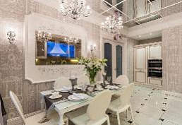 In the new project for kitchen the designer has decided to create an interior in classical style with mostly light tones.
