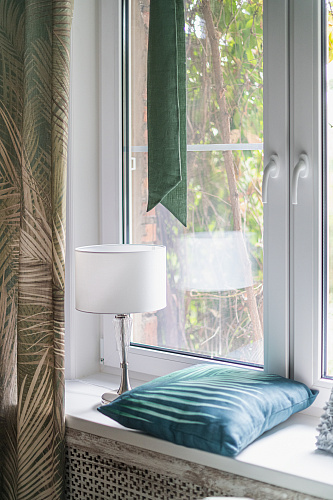 In the updated interior of actress Zinaida Kirienko, curtains and pillows from the Affresco Art Fabric catalog (ref. FA1952-COL3, FA2012-COL1) in tandem with New Art wallpaper (ref. RE210-COL2) created a cozy natural atmosphere. To maintain the interior of the living room of the actress's country house in the concept of eco-design, the author of the project, Gelena Zakharova, chose various types of natural flax in the Art Fabric collection. The curtains were sewn from Art Linen with a dense twisted texture. For the London curtain and companion pillows, a lighter flowing linen is chosen - Fluid Linen. The curtains on the veranda are made of Wild Linen, an unpainted linen fabric with a beautiful natural shade. To keep the natural color of the fabric, the drawing was transferred without a background. This combination perfectly supports the environmentally friendly atmosphere of the interior.