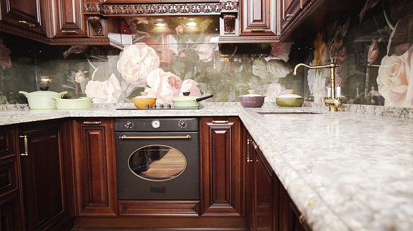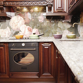 Handmade wallpaper Dream Forest decorated the kitchen and living room in the country house of Larisa Guzeeva, famous Russian theatre and cinema actress and TV host of the 1st Channel. Picturesque floral design (art. AB61-COL1) turned the space into luxurious blossoming garden. To fit the image perfectly Affresco designers adjusted the picture according to the walls’ dimensions. The frescoes were installed seamless and the doors and windows were cut out afterwards. Such technique created a perfectly smooth and even surface.