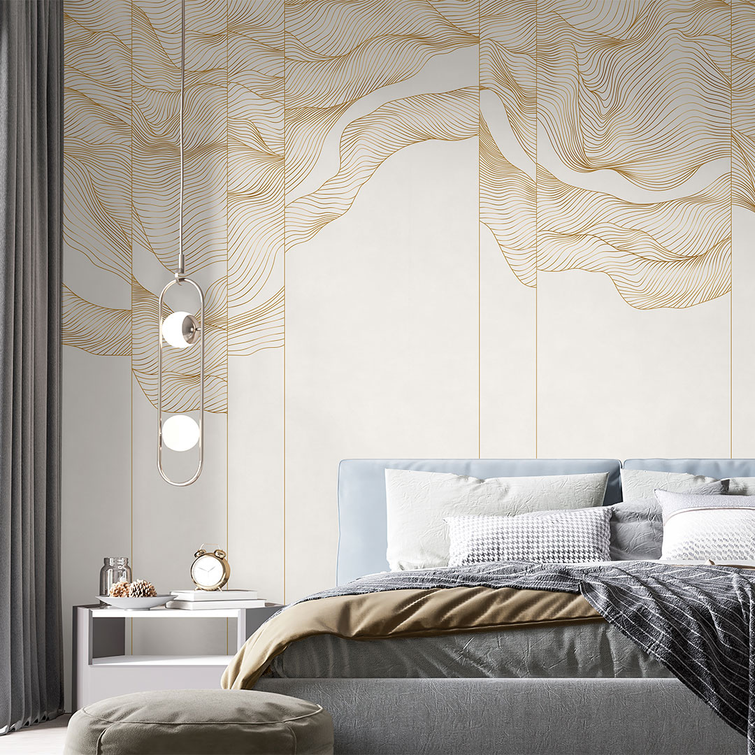 The design concept of the Line Art collection is a thin linear pattern, as the basis for creating new spatial solutions, and 160 interior background shades. The simplicity and conciseness of the line, combined with the variety of colored backgrounds, fill the interior with a unique style. The line drawn by the artists over the main background has a glowing effect, the illusion of the presence of gold, mother-of-pearl and volume, which makes the drawing alive and shimmering.